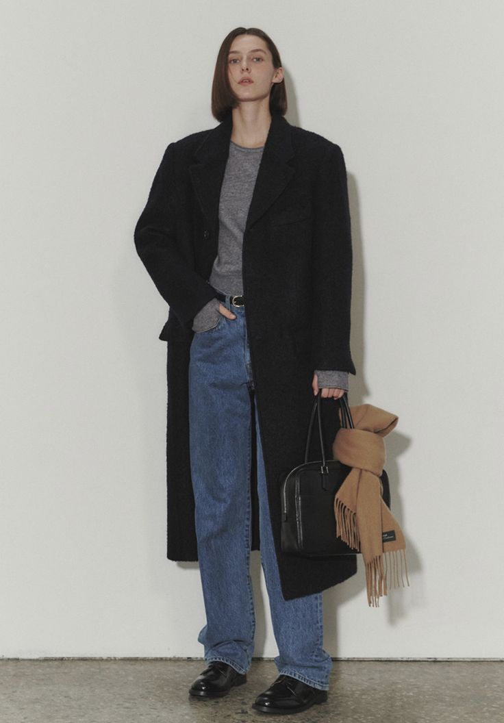 올겨울 코트 트렌드의 핵심은 맥시 한 길이감입니다. 발목까지 내려오는 긴 코트는 보온성을 높여줄 뿐만 아니라 세련된 무드를 완성합니다.